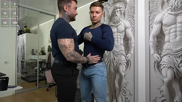 1 guy is naked. 2 guy touches him tender